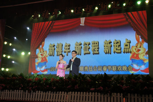 在公司董事长、总经理廖昶热情洋溢的新年贺词中,由南昌电视台主持人石磊、王卉青担当主持的春茗晚会热烈开幕。晚会节目丰富多彩,歌曲、杂技、舞蹈、魔术、小品、京剧精彩纷呈,其中还穿插了令人激动不已的抽奖环节。