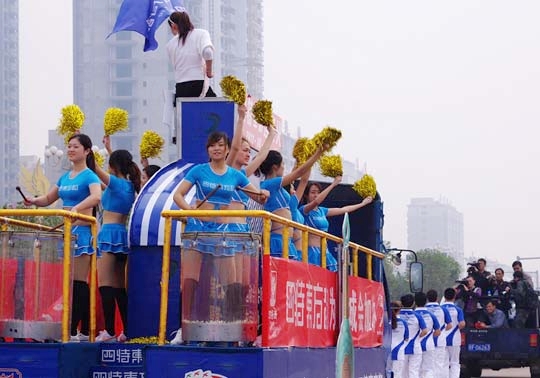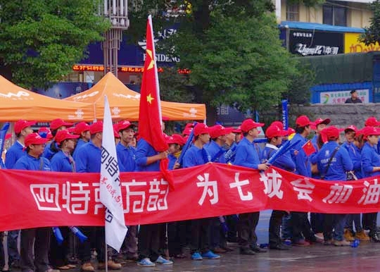 10月3日至10月13日,城运会圣火在江西省11个地级市传递,拉开七城会精彩序幕。四特作为主赞助商派出强大助威阵容,全程跟踪火炬传递工作。在每个火炬传递城市,花团锦簇的四特东方韵形象彩车和活力四射的四特美女啦啦队跟随火炬手传递圣火;所在地的四特营销团队、经销商团队则统一身穿四特东方韵POLO衫,挥舞加油棒在传递线路两旁为火炬传递呐喊助威,使火炬传递现场成为欢乐的海洋。