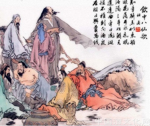 虽然历史上没有这“饮中八仙”齐聚一堂的明确记载,但盛唐时各种酒会盛行一时,参与者甚众。这“饮中八仙”,都是当时的名人,或同朝为官,或诗文相交,或意气相投,我们知道,名人一向喜欢扎堆,他们八个聚在一次酒局的可能性就非常大。所以,大路坚信他们必聚在一起饮过酒,而且还不只一次,当然参与者可能还有些其他人。这种聚会,可能在白天,也可能在夜晚;可能在秋雨绵绵中举杯把盏,也可能在春雷阵阵里开怀痛饮。总之,如果你不能证明他们没在一起过,那你就要相信大路的说法,曾经有过这么一次潇洒快活的神仙酒局,杜甫用诗把这种场面记录下来并传于后世。