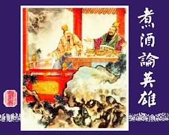 二人以青梅下酒,酒正酣时,天边黑云压城,忽卷忽舒,有若龙隐龙现。曹操说:“龙能大能小,能升能隐;大则兴云吐雾,小则隐介藏形;升则飞腾于宇宙之间,隐则潜伏于波涛之内。方今春深,龙乘时变化,犹人得志而纵横四海。龙之为物,可比世之英雄。玄德久历四方,必知当世英雄。”曹操实乃不世出的绝顶人物,这一番话,看似描述龙之变化,目的是说“人得志而纵横四海”。显然,这是他的一番自我剖白,借物咏志。当然他也下了一个套,试探在刘备眼里,什么人能纵横四海,比得上我曹操。刘备接连指出袁术、袁绍、刘表、孙策和刘璋等地方豪强,都被曹操一一否决。刘备这个回答应该给满分,因为当时是个人都会如此回答。这样曹操也就认为刘备见识一般,和常人无异。接着曹操给出了当世英雄的标准,他说,“夫英雄者,胸怀大志,腹有良谋,有包藏宇宙之机,吞吐天地之志者也。”刘备继续装傻,问:“谁能当之”曹操指了指刘备,后指了下自己,说:“今天下英雄,惟使君与操耳!”当时天雨将至,雷声大作。刘备装作受了惊吓的样子,筷子掉到了地上:“一震之威,乃至于此。”曹操笑着说:“丈夫亦畏雷乎”刘备说:“圣人迅雷风烈必变,安得不畏”将内心的惊惶,巧妙的掩饰过去了。