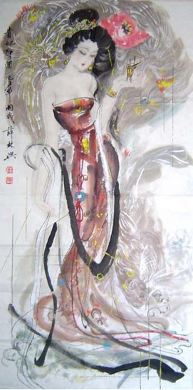 却说这天傍晚,皇宫院内凉风习习,皓月当空。唐玄宗与杨贵妃本来相约在百花亭品酒赏花,届时玄宗却没有赴约,而是移驾到西宫与梅妃共度良宵。良辰美景奈何天,虽然景色撩人欲醉,杨贵妃也只好在花前月下闷闷独饮,喝了一会不觉沉醉,边饮边舞,嘴里念叨着"李二郎你枉为人君,说话不算数......"万般春情,此时竟难自排遣,加以酒入愁肠,立时便醉。一时春情萌动不能自持,竟至忘乎所以,面对高力士等一干太监宫女,杨贵妃频频作出种种求欢猥亵状,倦极才怏怏回宫。